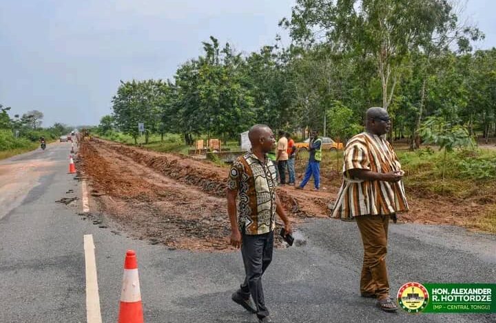 Mr Alexander Roosevelt Hottordze, Member of Parliament for Central Tongu, together with the District Chief Executive, Mr Addison Dodzi Mornyuie, has undertaken an assessment tour of ongoing patching works on the Adidome–Sogakope road.
